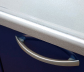 | 天板には、エンボス加工を施して、ステンレス特有の光沢に柔らかな質感をプラス。洗練された清潔感が魅力です。扉にも、汚れがさっと拭き取れる加工を施しています。※扉の色は階数やタイプによって変わります。 |