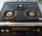 3口コンロ式で使い勝手も良くお料理の効率もアップ。グリルも標準装備で、焼魚なども簡単に料理できます。トッププレートは表面がガラス質の高品位ホーローなので、汚れもきれいに拭き取れます。 |